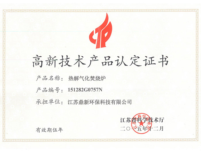 鼎新热解气化炉高新技术产品证书